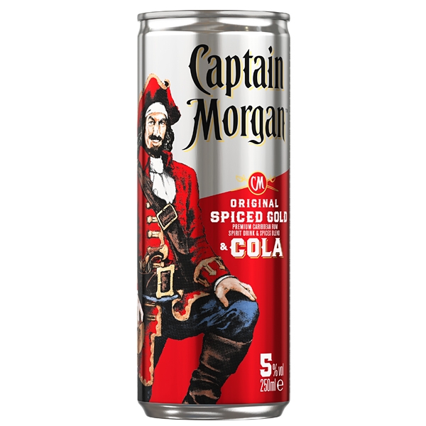 Složení: Captain Morgan Spiced Gold, cukr, voda, barvivo-karamel, oxid uhličitý, kofein, konzervant E202.