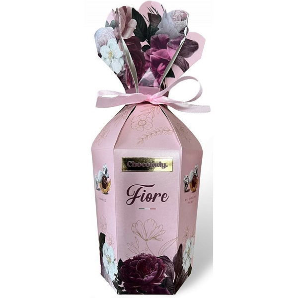 Popis: Chocolady Fiore mléčné čokoládové pralinky s karamelem (růžová)