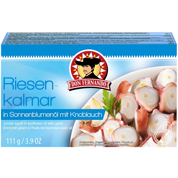 Chobotnice naložené v česnekové omáčce. Lze je výborně kombinovat s těstovinami všeho druhu.