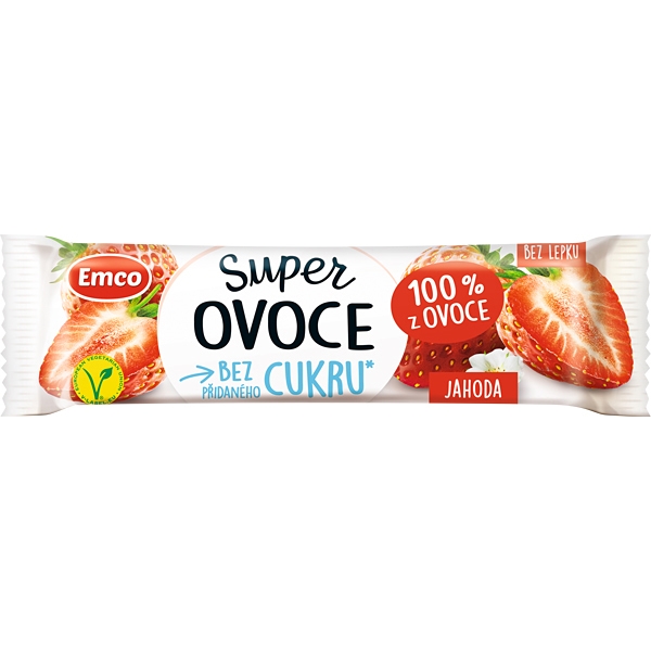 Složení: Sušená jablka 46,8 %, sušené rozinky 44,7 %, mrazem sušené jahody 8,5 %. Obsahuje přirozeně se vyskytující cukry.