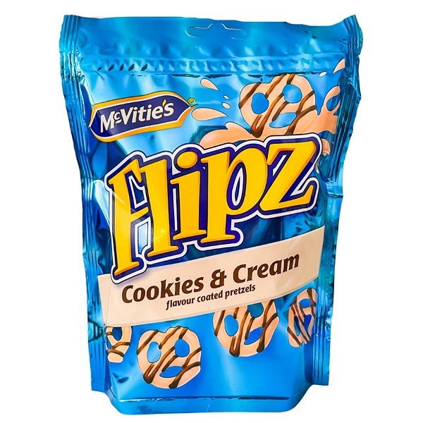 Popis: Flipz Mc Vities Cookies Creme preclíky polité polevou s příchutí sušenek a krému