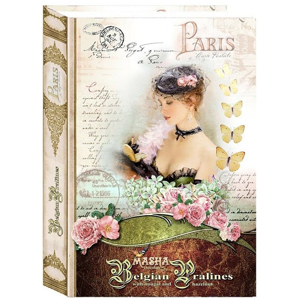 Popis: Masha kniha s bonbóny z belgické hořké čokolády různé motivy