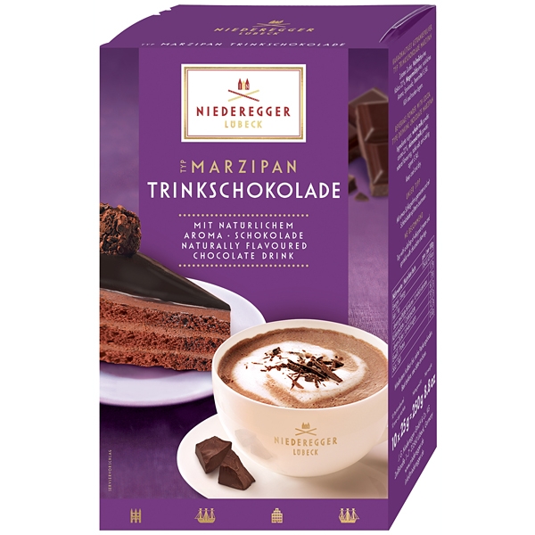 Další informace: S Niederegger horkou čokoládou si můžete vychutnat nenapodobitelnou marcipánovou chuť i v tekuté formě. Jakmile je nápoj s obsahem kakaa připraven, rozvine se svůdná vůně spojená s aromatickými čokoládovými tóny, díky nimž budete chtít stále víc. Balení obsahuje 10 sáčků s práškovým kakaovým nápojem s příchutí marcipánu.