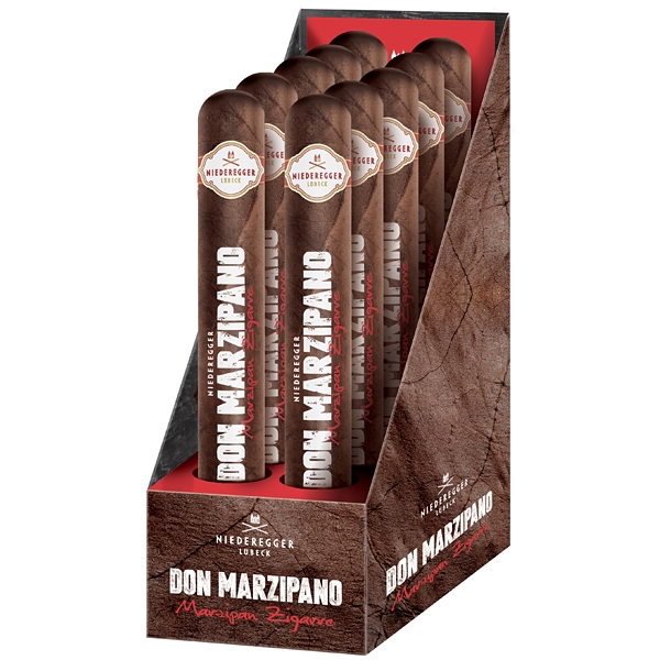 Další informace: Vznešený dárek, který dojímá nejen muže. S marcipánovým doutníkem \"Don Marcipáno\" můžete darovat skutečný požitek. Stylově navržená plechovka uvnitř skrývá tvarovaný doutník vyrobený z pravého lübeckého marcipánu. Skvělý marcipánový kousek který je doplňen obalem z hořké čokolády.