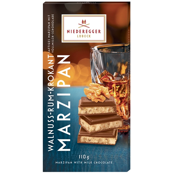 Další informace: Specialita všech specialit. Křehké a lahodné pokušení ve formě tabulkové čokolády. Pochoutka se skládá z mléčné čokolády rozpouštějící se v ústech ve které zaboduje speciální náplň. Protože uvnitř speciality je šťavnatý marcipán s vlašskými ořechy doprovázen jemným rumovým aroma.