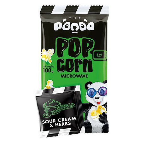 Popis: Panda Popcorn do mikrovlnné trouby s příchutí zakysané smetany a bylinek