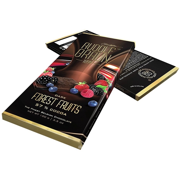 Popis: Belgická hořká čokoláda s lesním ovocem 57% kakaa