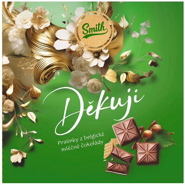 Popis: Smith pralinky z belgické mléčné čokolády Děkuji