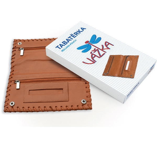 Kožená tabatěrka Vážka je vhodný pomocník pro každého baliče cigaret. Tato praktická kapsa obsahuje 2x uzavíratelný prostor zipem a prostor pro papírky. Vyrobeno z kvalitní kůže. Stylový doplněk k papírkům a filtrům Vážka!