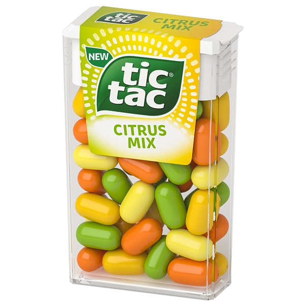 Složení: Cukr, dextróza, maltodextriny, kyseliny (kyselina vinná, kyselina citronová, kyselina jablečná), zahušťovadlo (arabská guma), rýžový škrob, aromata, protispékavá látka (hořečnaté soli mastných kyselin), barviva (kurkumin, Beta-karoten), prášek z mandarinkové šťávy, prášek z citronové šťávy, antioxidant (kyselina askorbová), prášek z limetkové šťávy, prášek z ovocné šťávy yuzu, leštící látka (karnaubský vosk), koncentrát spiruliny.